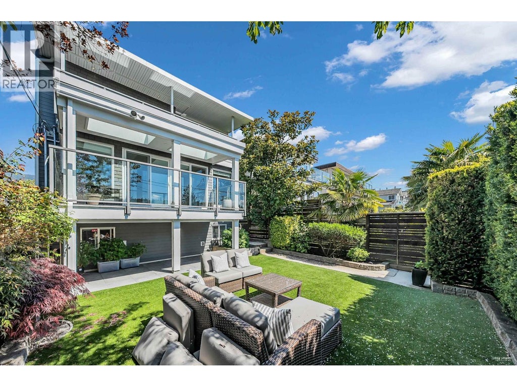 Situated on a quiet, sought-after street in Lower Ambleside, this custom-built 4-bedroom modern home has been extensively renovated with permits-including new roof, exterior, windows, and a stunning gourmet kitchen featuring Sub-Zero, Wolf, and Miele appliances. Additional upgrades include built-in speakers, a security system, and an in-ground sprinkler system.Enjoy spectacular ocean views from your sun-soaked south-facing primary bedroom, living room and expansive outdoor patios-perfect for alfresco dining and entertaining.Just a short stroll to the beach, seawall, and Ambleside´s shops and cafés, this is a rare opportunity to own a beautifully updated, move-in-ready home in one of West Vancouver´s most desirable neighbourhoods. (id:6289)