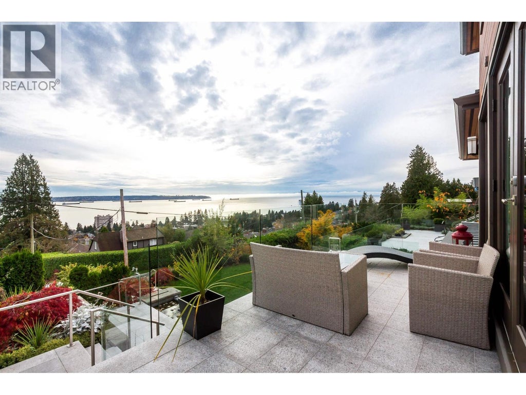 Situated on the 23rd block of Ottawa Street, this beautifully 2013-built home showcases stunning panoramic ocean views from all levels. The main floor features an open-concept layout with a modern kitchen, wok kitchen, and seamless access to a private back patio. A detached guest suite offers privacy for visitors or extended family. Upstairs boasts three bedrooms, each with its own ensuite, plus a full laundry room. The lower level includes a bedroom, media room, and a legal one-bedroom suite with kitchen and laundry - all enjoying ocean views. Flat front yard with pool potential. Close to top schools, shops, and the community centre, this is an ideal family home in sought-after Dundarave. (id:6289)