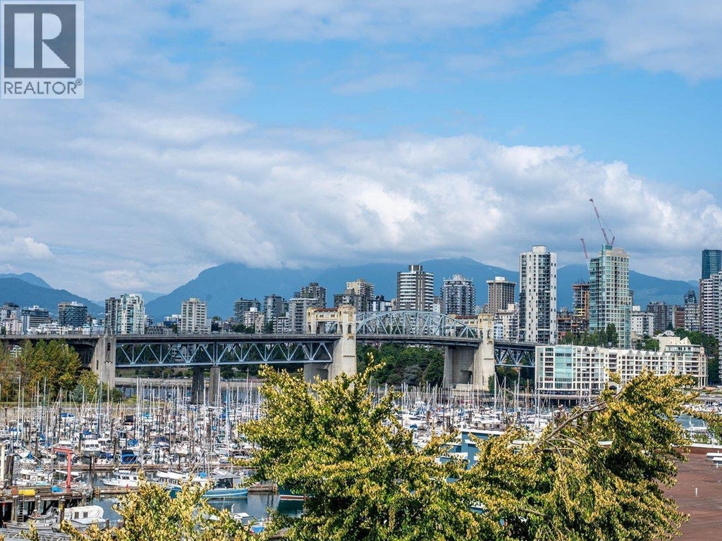 Perched on the 6th floor in the premier position of Mariner Point, this 2-bedroom, 2-bathroom 1346 sq.ft. corner suite offers the very best views and outlook in the entire complex. From your private balcony and enclosed sunroom, take in sweeping vistas of the city, mountains, water, and iconic Burrard Bridge. The interior of the suite is well laid out with 2 bedrooms and 2 bathrooms including a primary en-suite. Living and dining rooms connect to a well-appointed kitchen. The enclosed sunroom (with permits) is 268 sq.ft. in addition to the 1,078 sq.ft. of interior living space. Strata plan (1,075 sq.ft.) In-suite storage and laundry. Generous in-suite storage and laundry. The building has been well maintained by a proactive strata. This sought-after community welcomes pets and rentals, and the City of Vancouver pre-paid lease can be extended 20 years to 2066 by the purchaser. Secure parking stall in the underground. Steps to the Seawall, Granville Island, cafés, and restaurants. Some photos digitally staged. (id:6289)