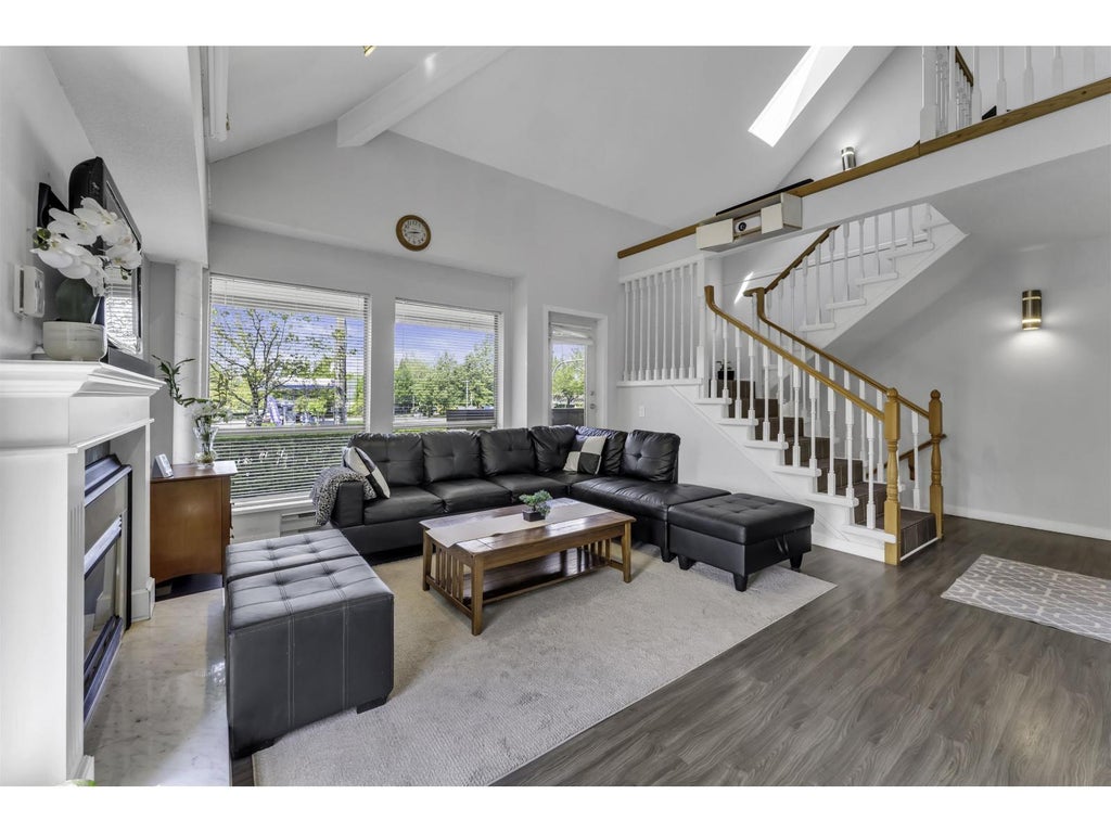 Welcome to this stunning end-unit townhome in the heart of Strawberry Hill, offering an open-concept floor plan with soaring ceilings and an abundance of natural light. Enjoy the convenience of being directly across from the popular Strawberry Hill Plaza, and just steps to transit, shopping, restaurants, schools, movie theatre, and the Surrey Sikh Gurdwara Sahib. This rare layout includes a room on the main floor alongside the kitchen and living area-perfect for families looking for functionality and comfort. Multiple patios and large windows create bright, airy living spaces that flow seamlessly indoors and out. Don't miss your chance to own this gem in a highly sought-after location. Book your private showing today! (id:6289)