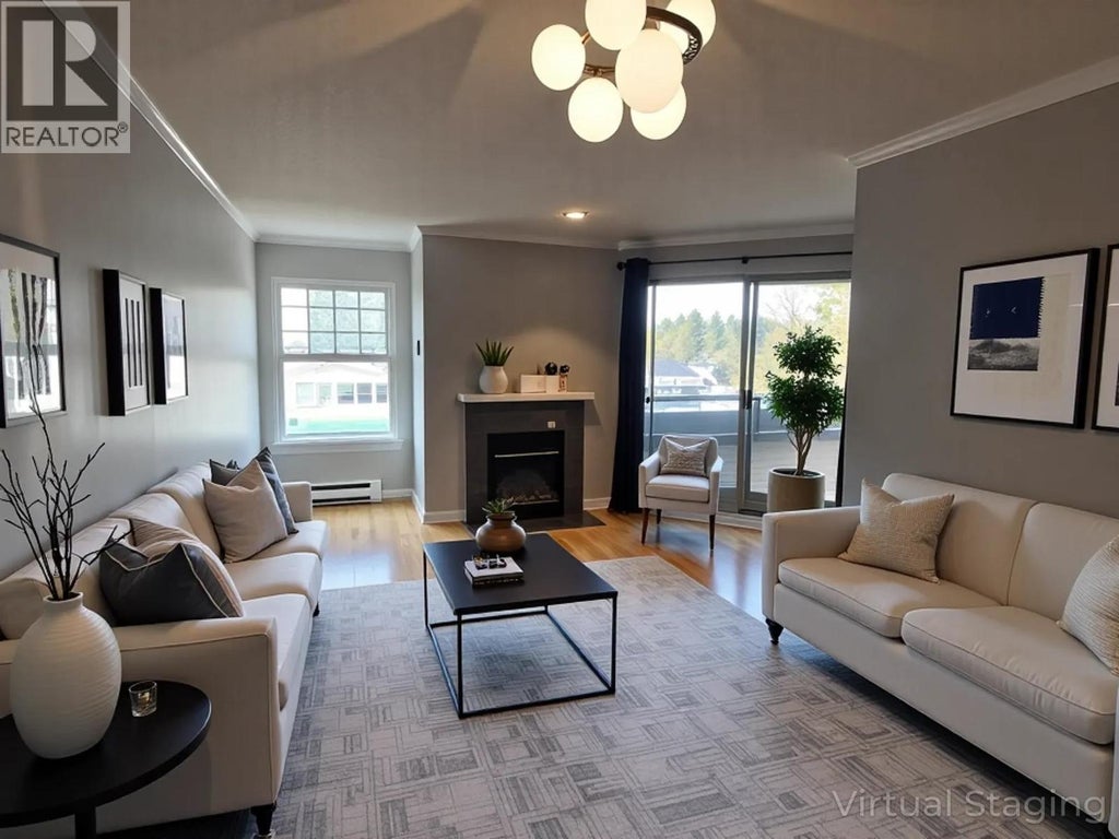 Beautiful BRIGHT 1 Bedroom at DISCOVERY REACH! Entertain friends & family in the spacious open Living Room / Dining Room with access to the large covered balcony. Feels like home with lovely unit features including hardwood & tile flooring, crown moulding, neutral paint & gas fireplace-BONUS gas/hot water included in maintenance fees! Quality built by BOSA with rainscreen technology, new roof & balconies 2015, new parking membrane 2019 PLUS live-in caretaker offers peace of mind. Location is key! Enjoy the convenience of central Uptown NW AND the private oasis of the tranquil inner courtyard gardens. Walking distance to skytrain, parks, schools, coffee shops, shopping & restaurants. 1 secure parking/1 locker Bonus 2 pets allowed-no size restriction. Must see! (id:6289)