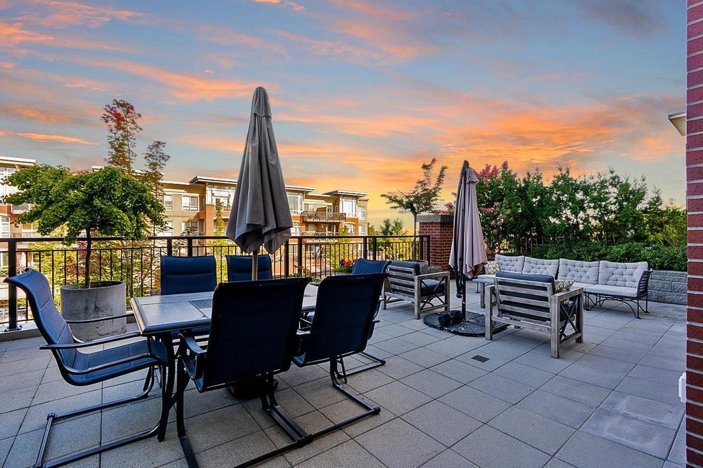 Welcome to this bright and beautifully maintained 2-bedroom condo in the heart of South Surrey! The open-concept layout showcases a chef-inspired kitchen with granite countertops, gas range and built-in microwave, opening to a spacious living area with a cozy electric fireplace. Step out to your 600 sqft patio- a rare find offering endless space for entertaining, gardening or outdoor living year-round! The primary suite offers a spa-like ensuite with double sinks, a large soaker tub and his and hers closets. Enjoy excellent building amenities including a gym and clubhouse, plus two secure parking stalls and a storage locker. With shopping, dining, and transit right at your doorstep, this location can't be beat! Book your private showing today! (id:6289)