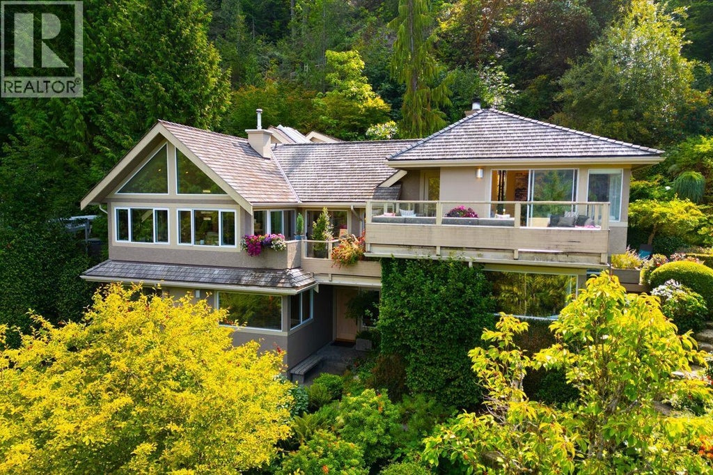 Completely unique! Stunning 3800 sq/ft treasure nestled into a totally private sun drenched lot offering gorgeous ocean views in a setting that is simply magical. Spectacular, landscaping, rock work and tranquil ponds wrapped around this exquisitely crafted and completely renovated custom home with impeccable attention to detail and incredible quality throughout which is a feast for the eyes. Impressive architecture shines, with spacious open rooms, wine cellar, vaulted ceilings, skylights and beautiful natural lighting providing a glorious experience to share with friends and family. Private elevator, incredible indoor/oudoor living with huge covered outdoor patio built in bbq and 1700 sq/ft deck and spa/ tub provide the most magnificent tranquil lifestyle that is rare! Very special! (id:6289)