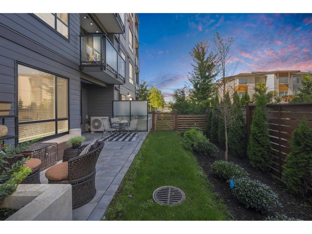 Welcome to Camden by award-winning Zenterra Developments! This spacious 2 bed + large flex, 2 bath condo offers the perfect blend of indoor comfort & outdoor living. Rarely available, enjoy a MASSIVE walk-out patio & fully fenced yard-ideal for morning coffee, entertaining, or kids & pets to play. The large flex room easily works as a 3rd bedroom or home office. Thoughtfully upgraded with $15K spent on A/C in both bedrooms & the main living area, plus durable laminate flooring throughout-NO carpet! The modern kitchen features quartz counters, a large island, and Samsung S/S appliances. Prime Willoughby location just steps to shops, schools, Langley Events Centre, Carvolth Exchange & the future SkyTrain. Comes with 1 parking & 2 storage. GST already paid! (id:6289)