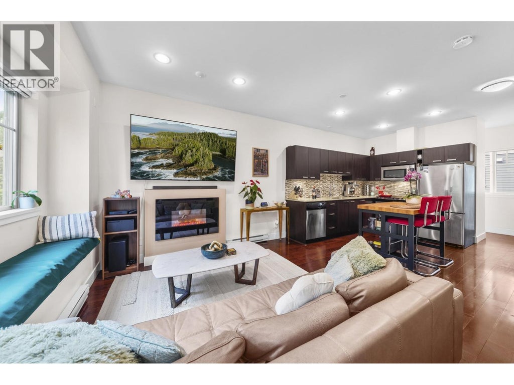 Feels Like a Detached Home - Without the Detached Price Tag! This rare end-unit townhome offers unmatched privacy on the quiet side of the complex. Enjoy a private garage, a separate garden-level entrance to a bedroom with ensuite and patio - ideal for guests, in-laws, or a home office.The main floor features an inviting bay window, electric fireplace, engineered h/w & an open-concept kitchen with granite counters, stainless steel appliances, and a convenient powder room. Upstairs, two spacious bedrooms (including a bay-windowed primary with double closets) offer peace & quiet being a corner end unit. Walk to Rocky Point, Brewers Row, SkyTrain, Westcoast Express, schools, shops, and more. Perfect for families, professionals, or investors - just add your personal touch to MAKE IT YOUR HOME! (id:6289)