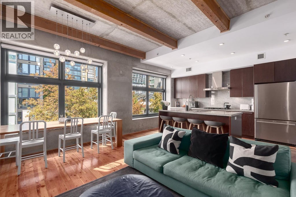 Experience loft living at the McMaster, a boutique heritage conversion by Townline Homes set in the heart of Yaletown. This 2-bed/2-bath residence combines character and comfort with reclaimed fir floors, exposed brick and concrete, and soaring 10-foot ceilings. A gourmet kitchen with an island, granite counters, and premium stainless steel appliances, including a gas range, makes entertaining effortless. The generous floor plan offers frosted glass accents and a primary ensuite designed for relaxation. Central heating and AC provide year-round comfort, while thoughtful storage solutions and secure parking add everyday convenience. With only 15 homes in the building, this is a rare opportunity to own a piece of Vancouver´s architectural history reimagined for modern living. (id:6289)