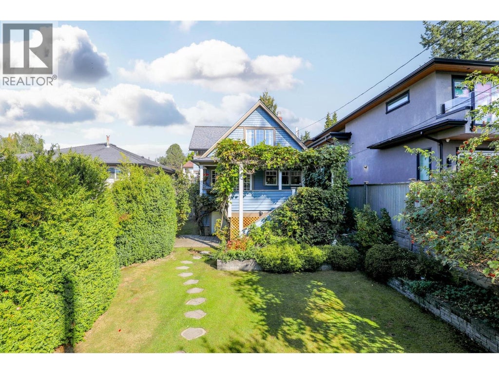 Lovingly maintained heritage home in Central Lonsdale, blending historic charm with modern updates. Known as the Cant Residence, this Edwardian home was built in 1911 and expanded in 1914. Notable features include a wrap-around verandah, sleeping porch, and original fir floors with millwork and wainscoting. The grand foyer leads to an open-plan living/dining area with a wood-burning fireplace and stained-glass window. The modern kitchen boasts stainless steel appliances, a large island, and opens to a sunny deck. Upstairs offers 3 bedrooms, a 4-piece bath, and a balcony with mountain views. The fenced backyard includes a grassy area, tree fort, and EV-equipped parking. Steps from Carson Graham Secondary, parks, and close to all Lonsdale amenities. (id:6289)