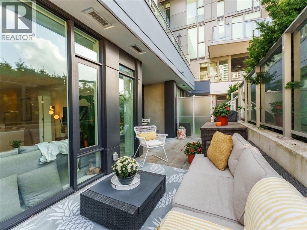 Stunning 2 bed/2 bath south-facing corner home in a premium 3-year-old River District building. Rare private entry opens to a 200 sf sunny patio-ideal for pets, gardening, BBQs, or entertaining with privacy. Luxury interiors feature timeless colours, large kitchen island with full-size Jenn-Air appliances, gas range, spa baths, engineered flooring, built-ins, roller blinds & over-height ceilings. Excellent layout with separated bedrooms, open living/dining & foyer entry. Primary has floor-to-ceiling windows to patio; 2nd bedroom perfect for guests/office. Resort-style amenities: concierge, rooftop pool, hot tub, gym, lounge, BBQ deck, garden plots, EV chargers, bike storage & visitor parking. Steps to shops, dining, parks & the Fraser River. (id:6289)