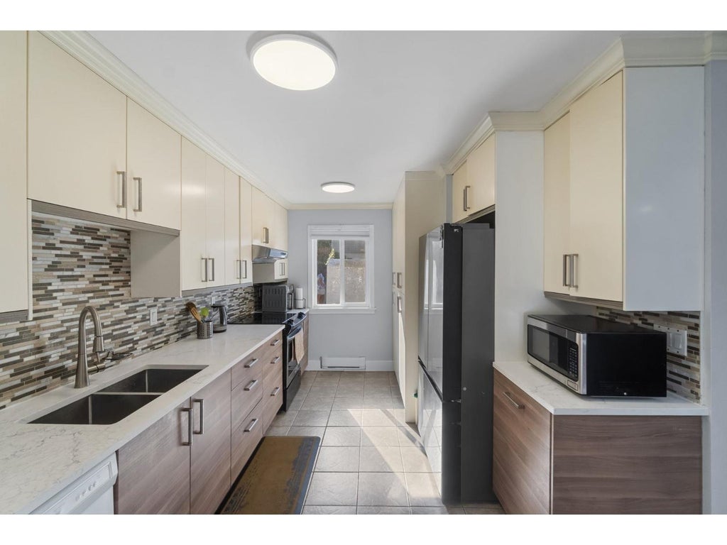 Welcome to Unit 45 at Abbotsford Court! This beautifully updated corner-unit townhome is move-in ready with nothing to do but enjoy. The modern kitchen boasts quartz countertops and a brand-new French-style double-door fridge, complemented by updated flooring, stylish light fixtures, and a high-efficiency heat pump. With 3 bedrooms, 2 bathrooms, and a spacious rec room, there's plenty of space for the family. Relax on your private sundeck for BBQ nights or morning coffee while kids play in the nearby community playground. In a family- and pet-friendly complex of only 50 homes, you'll love being walking distance to Seven Oaks Mall and Mill Lake Park while still enjoying a quiet, cozy setting. Open House: Oct 11 & 12, 2-4 PM (id:6289)