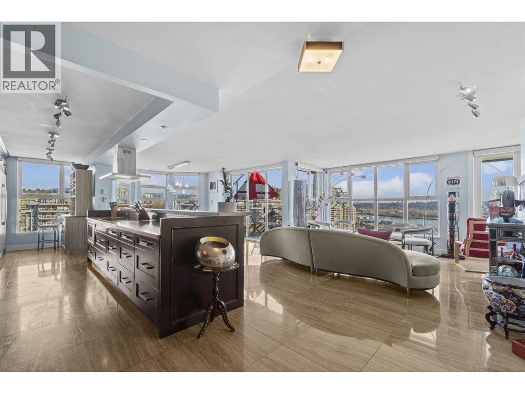 Incredible Renovation with Panoramic River Views - A Penthouse Like No Other! This luxurious penthouse blends elegance and comfort. The two-story entryway with coffered ceilings and a chandelier sets the tone, leading to a chef's kitchen with a 14' island, double convection ovens, a full-size fridge/freezer, and an induction cooktop. Spacious living and dining areas flow to a deck, while the cozy family room with a gas fireplace opens to another with river views. The serene primary bedroom boasts a spa-like ensuite, custom closets, and a private office. Upstairs, enjoy AC, three bedrooms, a den with a fireplace, a jetted tub, and the third deck. Steps from the Seawall and SkyTrain, this is waterfront living at its finest! (id:6289)