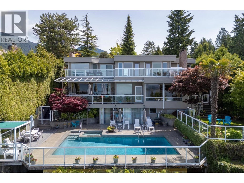 Situated in prestigious Cypress Park Estates, this custom-built one-owner home blends contemporary comfort with stunning ocean views. Expansive living and dining areas, an updated gourmet kitchen, and a family room open to covered decks and landscaped gardens-all overlooking the sparkling pool and sweeping westerly ocean views. The main level also offers a private office and guest suite, while upstairs features five bedrooms with decks, including a luxurious primary with spa-like ensuite. A spacious rec room on the lower level flows directly to the pool and hot tub, creating an ideal setting for family living and entertaining. With a level driveway, oversized double garage, and close proximity to top schools, Caulfeild Village, and quick highway access, this residence truly has it all. (id:6289)