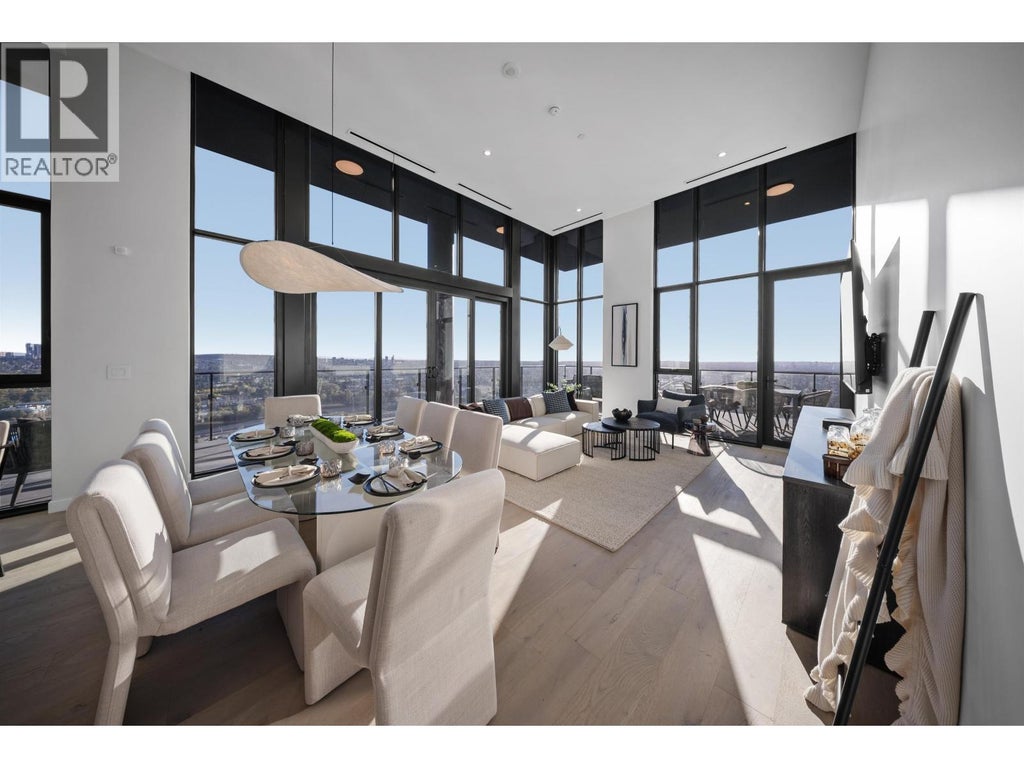 Rising above Burnaby, this penthouse is the crown jewel of the city´s most exclusive development. With soaring 14-foot ceilings, 2 bedrooms plus den, integrated Sub-Zero and Wolf appliances, quartzite stone countertops, and LED-lit cabinetry, every inch reflects precision and sophistication. The spa-inspired bathrooms feature marble tiling, a frameless glass steam shower, soaker tub, and heated NuHeat floors. Expansive outdoor living spans over 2,200 sqft across three private terraces, complete with a hot tub, BBQ, and kitchenette-perfect for entertaining against a backdrop of panoramic views of downtown Vancouver to the Lions Gate Bridge. Residents enjoy world-class amenities including indoor and outdoor pools, golf simulator, bowling lanes, theatre, and fitness centre. This is luxury, redefined. (id:6289)
