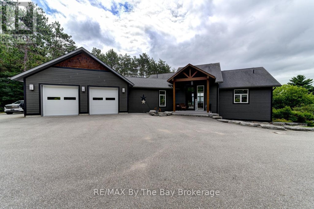 This stunning custom-built luxury home offers the ultimate in refined living with breathtaking views over the harbour in Penetanguishene. Designed for comfort and style, the home features a gourmet island kitchen with high-end appliances, perfect for entertaining, and opens into the elegant living and dining areas where a double-sided stone fireplace creates a dramatic feature wall. Step out to the covered composite deck and take in the views surrounded by professionally landscaped grounds. Rich mahogany wood floors flow throughout the main level, which also includes a spacious laundry room with a built-in feature closet wall and interior access to the oversized, heated, and insulated attached garage. The lower level is equally impressive with two generously sized bedrooms, a walk-in closet, ample storage, and a large rec room with patio doors leading to a private patio area. Outdoors, enjoy a charming shed/playhouse with electricity, a large firepit gathering area, and beautifully designed gardens all perfectly positioned to capture the serene harbour views. For added peace of mind, the home also features a Generac generator that automatically activates in the event of a power outage. A truly exceptional property that combines luxury, function, and unmatched setting. (id:6289)