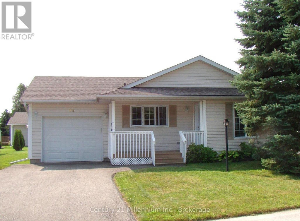 Embrace retirement living in beautiful Park Place, a 55+ gated community in Wasaga Beach. Plenty of space in this Nottawasaga model featuring a covered front porch for those morning coffees and a walk out to a rear deck with awning for your afternoon bbqs and evening relaxation with friends and family. Attached garage can be accessed from the inside main floor laundry. Garage is oversized, leaving room for a hobby space. The primary bedroom has a walk-in closet and ensuite with shower and ample space for sitting. Guests will enjoy visiting with a spacious main bathroom and second bedroom. Stepping in from the front porch there is a foyer to allow space to take off your coat and shoes before relaxing in your living room. The kitchen has a pantry, plenty of cupboards, newer appliances and room for a 6 seater table. The corner lot is landscaped and equipped with a sprinkler system. In 2022, a new 40 year shingle roof was done, complete with new air vents and ice/water shield. Insulation was upgraded with current owner. Enjoy all the amenities Park Place offers, including a rec centre, woodworking shop, library, indoor pool, fitness centre and activities indoors and outdoors. Monthly fees for new owners are Rent $800.00+ taxes for lot $35.81+ taxes for structure $100.04= $935.85. Water/sewer billed quarterly. Close to Marlwood Golf Course, Marl Lake and the Nottawasaga River so you can enjoy outdoor recreation. A short drive to Collingwood and Barrie, world's largest fresh water beach and Wasaga Beach's new arena and library. (id:6289)