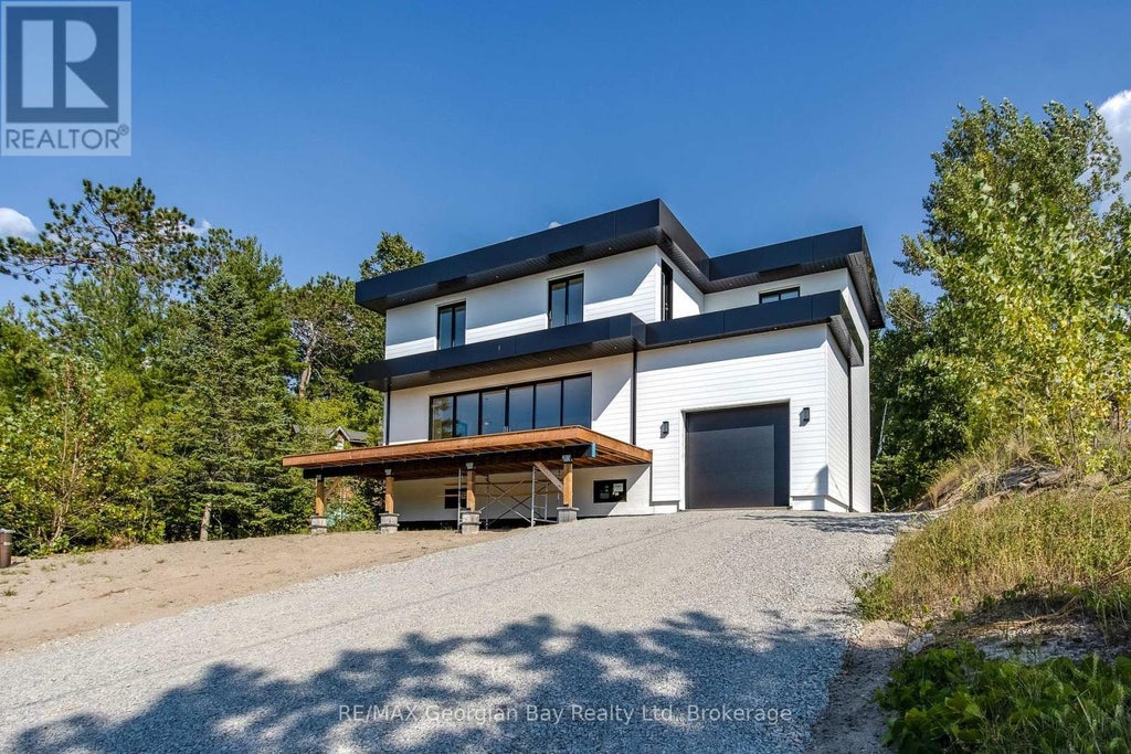 Located at Bluewater Beach with easy access to a nice sand beach. Light and bright throughout with amazing views of Georgian Bay and its picturesque sunsets. The main floor has an open layout and has been finished with modern, quality finishings, resulting in a sleek and elegant aesthetic. The main living area walks out to a spacious deck overlooking the bay. The upper level includes the primary bedroom with walkout to a balcony, two additional bedrooms, laundry and two baths. The full basement is unfinished and awaiting your finishing touches. Attached, single car garage offers inside entry to the house. Easy to maintain - inside and out. The exterior is finished with Italian SAGIPER architectural PVC cladding for a sleek and polished look. Landscaping is simple and minimal - this is a beach house to enjoy. Located 90 seconds to the beach, 15 minutes to nearest golf course, 45 minutes to Blue Mountain and 90 minutes to the GTA . (id:6289)