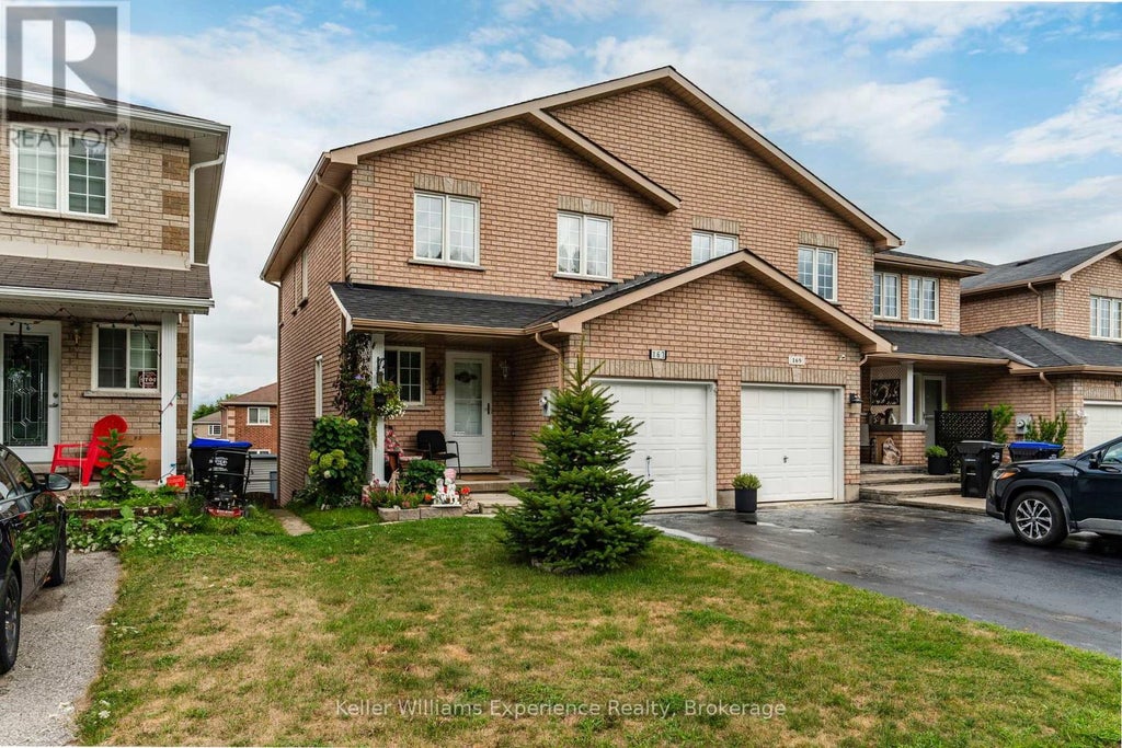 Welcome to this well cared for end unit townhome in a quiet, family friendly neighbourhood. Offering 3 bedrooms and 1.5 baths, the spacious primary bedroom boasts a walk-in closet and semi-ensuite. The bright main floor includes an open dining area with a walkout to the back deck and gazebo, overlooking the beautifully landscaped gardens and a view of the neighbourhood park just around the corner. The partially finished basement provides extra living space, a rough-in for a 3rd bathroom, and a walkout to the large ground-level deck and backyard, complete with an oversized shed. Recent updates include a newer roof (2 years old). Ideally located just steps to the park, and close to Georgian Bay, schools, shopping, and all amenities. (id:6289)