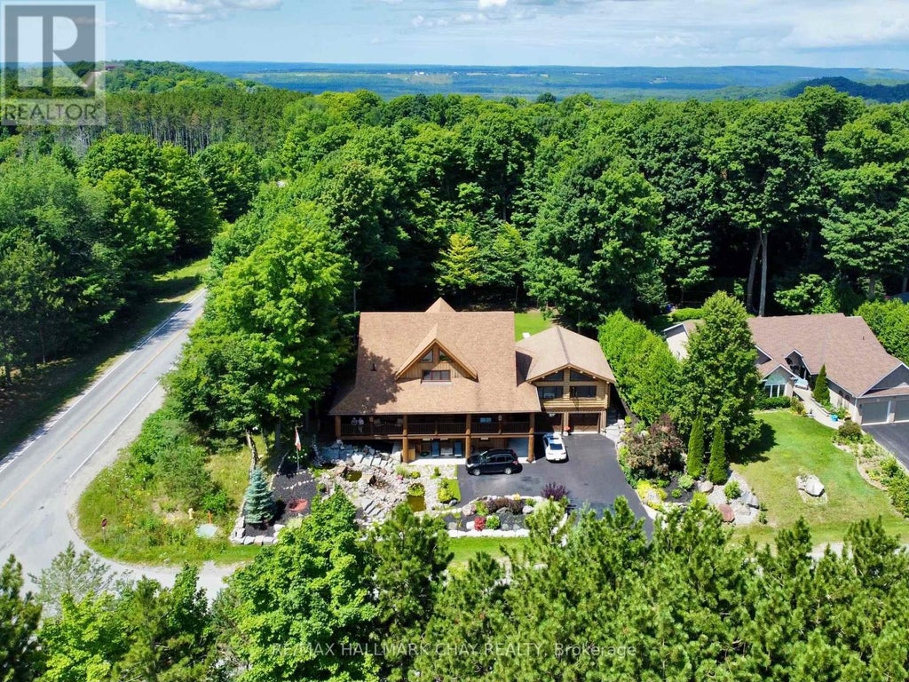 Welcome to 118 Highland Drive, Oro-Medonte. Discover the charm and craftsmanship of this stunning log home in the heart of Horseshoe Valley. Featured in the movie The Christmas Chronicles starring Kurt Russell, this home radiates warmth and comfort, complemented by award-winning landscaping and a breathtaking 3-tier pond a tranquil highlight of the property. Step inside to a spacious foyer with tile flooring which leads into a cozy yet expansive rec room with rich hardwood floors. This level also features a beautiful wet bar, a comfortable bedroom, and a 4-piece bathroom, ideal for entertaining or hosting guests.The open-concept main floor is designed for modern living. The kitchen dazzles with granite countertops, stainless steel appliances, and a breakfast bar, flowing effortlessly into the dining and living room. A walk-in pantry with a built-in freezer and second fridge provides exceptional storage, while a stylish powder room completes this level.The second floor offers two generously sized bedrooms, each with its own ensuite. The primary suite boasts a walkout to a private balcony overlooking the backyard and includes a convenient laundry area. A bright office space and soaring cathedral ceilings with wood beams enhance the airy ambiance of the home.The heated garage, complete with an entertainment room above, blends utility with style. Outdoor living is equally impressive, with multiple walkouts to covered porches, including a wrap-around porch and private balconiesperfect for soaking in the peaceful surroundings. You will love the cleanliness and efficiency of the water radiators and in-floor heating, ensuring consistent warmth and a clean, comfortable atmosphere throughout.Situated just one minute from Vetta Nordic Spa, five minutes from Horseshoe Valley Resort, and close to Craighurst amenities and major highways, this property offers a harmonious blend of natural beauty and unmatched convenience. (id:6289)