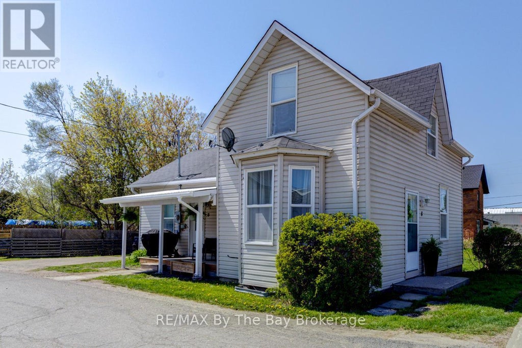 Discover this fantastic investment opportunity or ideal multi-family living setup in the heart of Elmvale! This well-maintained duplex is situated on a spacious corner lot just a short walk to downtown shops, restaurants, and all local amenities. The front unit features a bright and inviting open-concept kitchen and living room, a comfortable bedroom, and a modern 3-piece bathroom perfect for singles or couples. The larger rear unit offers an open-concept kitchen and living area as well, complete with a full 4-piece bath, convenient main floor laundry, and two generously sized bedrooms on the upper level. The fully fenced side yard provides ample outdoor space for tenants to enjoy, and includes two private storage areas for added convenience. With on-site parking and a desirable in-town location, this property offers excellent potential for rental income or extended family living. (id:6289)