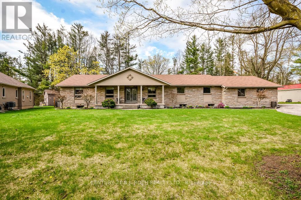 Welcome to this beautiful ranch bungalow. As you pull up to the home, you are greeted with a large covered front porch and beautifully landscaped front yard. The home is on an oversized 140 x 280 ft irregular lot. Once you step inside, you are walking into an elegant style home. Hardwood floors, zebra blinds, a cozy gas fireplace, and large spacious rooms throughout. The kitchen is every chefs dream. With an oversized island, granite countertops, high end appliances, and an abundance of pantry and cupboard space. As you walk through the home, you will come across a therapeutic sauna, perfect to use to unwind, with a 3 piece bathroom. A beautiful dining room perfect for hosting, and a large and spacious family room, perfect for family gatherings. The primary bedroom is generously large with a walk-in closet and beautifully updated ensuite bathroom. The additional bedroom offers a walk in closet and a lovely ensuite bathroom as well. In the basement, you have a spacious rec room, large bedroom with a spacious closet, and a stunning 4 piece bathroom with a luxurious soaking tub. The basement offers a walk-up to the garage, and a rough-in for a kitchen, perfect for those looking for multi-generational capabilities. In the rear yard, the home boasts a generous rear wood deck with two entries into the home. Numerous mature trees offer beautiful views as well as lots of privacy. A must see! (id:6289)