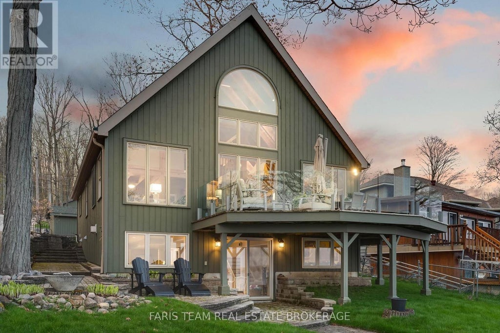 Top 5 Reasons You Will Love This Home: 1) Incredible Midland Point post and beam home complete with a massive workshop/garage while peacefully situated on a large lot with direct access to 50.68 feet of waterfrontage on Georgian Bay 2) Loft space featuring a private primary suite including a sitting area overlooking the main living space and finished with a bathroom and wall-to-wall closets 3) The expansive deck with seamless glass railings and gorgeous views across the bay is perfect for entertaining in the warmer months, alongside an over 80-foot aluminum dock for added convenience 4) Flexible living with a fully finished walkout basement offering a recreation room, guest bedroom, and a full bathroom 5) Settled in an exclusive area, an easy commute to in-town, and close to shopping and grocery stores. 2,677 fin.sq.ft. (id:6289)