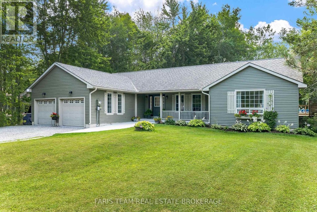 Top 5 Reasons You Will Love This Home: 1) Nestled in a prestigious enclave on nearly an acre of tree-lined property, this beautifully renovated bungalow offers peace and privacy while still being just minutes from the vibrant amenities of Orillia 2) Soaring vaulted ceilings, upscale finishes, luxury vinyl flooring, quartz countertops, a custom kitchen with stainless-steel appliances, and a cozy gas fireplace create a stylish and inviting atmosphere throughout the home 3) With three main level bedrooms, a sunroom, a fully finished basement featuring two additional bedrooms, a large recreation room, and a semi-ensuite bathroom, this home effortlessly accommodates everyday living and guests 4 Enjoy a fully fenced backyard, expansive deck with above-ground pool, mature trees for privacy, and deeded beach access nearby Bayou Park and boat launch, perfect for relaxation and recreation 5) Appreciate the large driveway, attached double garage, and a separate detached garage with covered overhang providing exceptional storage and functionality, complemented by a new garage floor and poured front walkway for a polished, welcoming exterior. 2,043 above grade sq.ft. plus a finished basement. (id:6289)