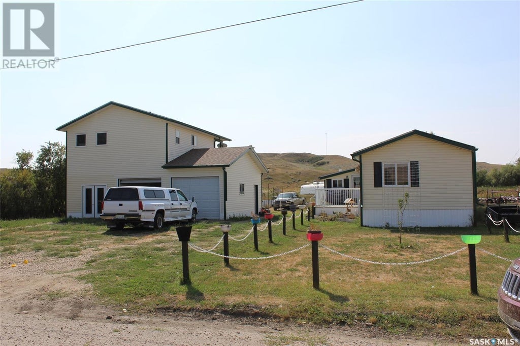 Hard to believe this property is available in Eastend! This is amazing, the home is a 1986 14’x72’ mobile with an addition that has been totally updated with new roof, new windows, new siding, new furnace, new kitchen to become a comfortable 3 bedroom, 2 bath home. The main living is super comfortable with a large kitchen with bright oak cabinets, a center island, built-in dishwasher, microwave hood fan, pantry, and dine-in style. The living room features a natural gas fireplace and vaulted ceilings. The home has two guest bedrooms with a full 4pc bath at one end of the home and the master bedroom is all the way at the other. The master bedroom has a large closet and a 4pc ensuite complete with a jetted tub. The addition to the home acts as a huge mudroom complete with a storage closet. The home has a unique situation with the garage, it has been styled with a 24’x23’ double car bay that is complete with two overhead doors, in-floor heat, wired 110/220 with a workbench. The garage is where you make your money for sure as it features a “bachelor” suite (1 bedroom, 1bath) and a second loft suite that is 1bedroom, 1 bath with a huge deck. The upper suite would make a great studio but is also a desirable rental unit to help out on the mortgage. The yard of the home is huge with a large garden space, two sheds for storage, raised garden beds, and view of the Eastend hills that can’t be beat!! Have a look today at a home that has it all. (id:6289)