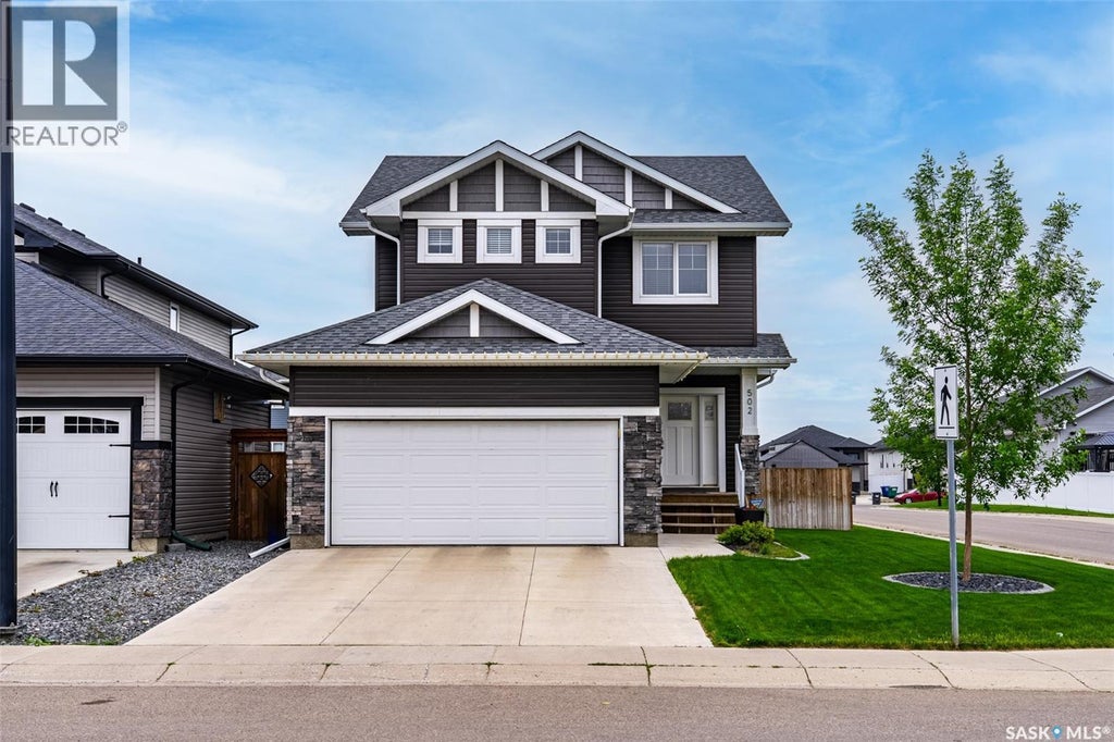 Welcome to 502 Childers Crescent in Saskatoon's Kensington neighbourhood. This two storey home was once a Montana Homes Show home. The current owners have added tasteful touches to the main floor and finished the basement beautifully. Walking in you are greeted with a spacious entry. Just off the garage entrance you will find a powder room and a laundry room. The rest of the main floor is open concept with the living room, dining room, and kitchen open to each other. Up on the second floor is a large bonus room, and 2 bedrooms for office/guests/kids, as well as a 4 piece bathroom. The primary bedroom is also on the second floor with a true walk-in closet, and a 4 piece bathroom with 2 sinks in the large vanity. The basement finishes are very appealing. There's a 4th bedroom, a 3 piece bathroom with a tiled shower, and plenty of room for a media space, a gym, family room, or a myriad of other options. The backyard is fully fenced, has a lush lawn, and a deck to hang out with friends as you BBQ on warm summer evenings. The garage is insulated and boarded keeping vehicles frost free in colder months. This house is turnkey and ready for it's new owners. (id:6289)