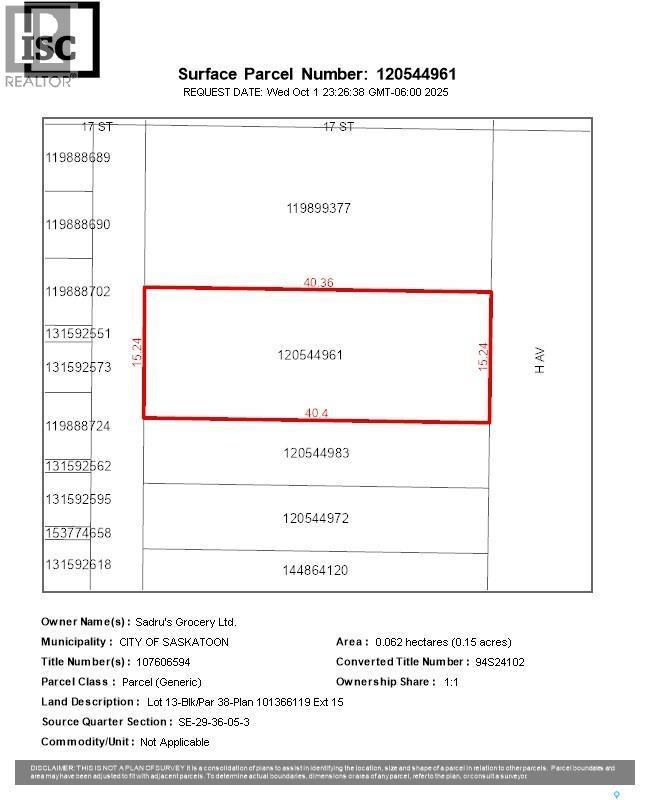 A true Riversdale/King George treasure, where heritage charm meets modern opportunity. A rare zoning opportunity that provides the option to build residential, commercial, or a mix of both. The corner lot at Avenue H South and 17th Street West presents a great opportunity for development. Lot sold as is. (id:6289)