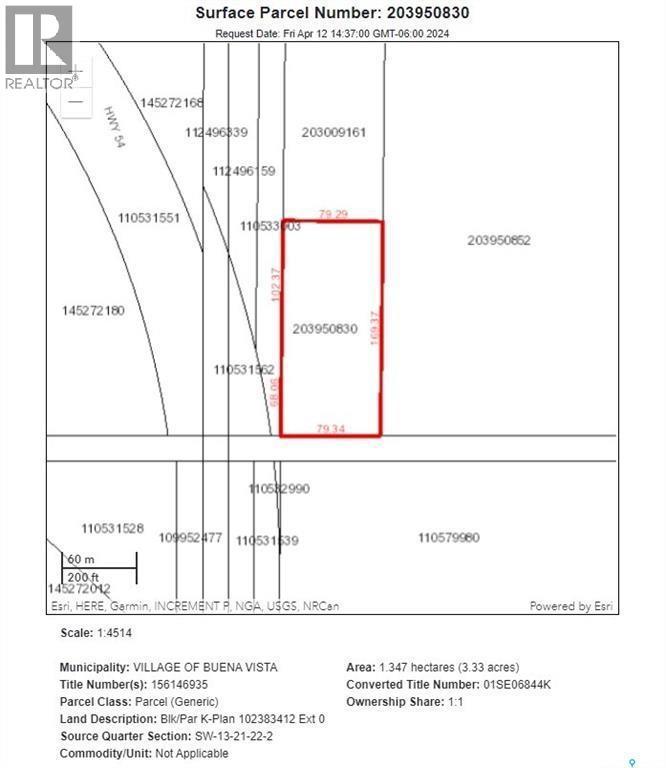 Your chance to own a great piece of property right off of HWY 54 as you're entering Buena Vista. Zoned Cottage Industrial, this 3.33-acre parcel is an ideal location for a shop or storage facility, with easy access and frontage to the service road, which is essentially highway frontage. Only 25 minutes from Regina on asphalt the whole drive, and very close to Regina Beach, which has almost any amenity one needs. Call today! (id:6289)