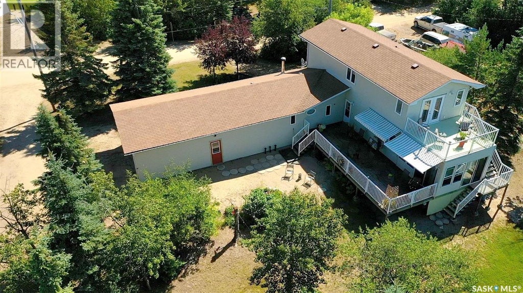 This one owner, four season lovingly cared for lake property is an opportunity you don't want to miss. With approximately 2000 sqft and a two car garage this home sits on a large Lakeview lot. The large deck greets you and is equipped with two retractible shades and flows into the quaint sunroom. The main level of the home has a like new feel with a major addition done in 2010 adding the kitchen/dining, bedroom, bath and second story!!! With a beautiful white eat in kitchen, pantry, island and large dining area. The main living room is large and perfect for gathering with a beautiful updated wood burning fireplace that the owners enjoy through the winter months and on colder evenings. There are two large bedrooms, a four piece bath, laundry and utility to finish off the main. Upstairs there is a family room that could be a potential fifth bedroom if one chose that has patio doors to go out and enjoy breathtaking views of the lakes and sunsets! There are two more good sized bedrooms that are the perfect spot for guests. Outside there is large fire pit area sheltered by trees and is just steps away from the sandy beaches of Good Spirit lake. There is also a nearby marina available for boat docking if you wish! Lake living isn't just for the warmer months with easy access to cross-country ski trails( Good Spirit Cross Country ski club keeps the trails groomed with access to a warmup shack), ice fishing, hunting for geese, deer and Moose, as well as miles and miles of snow mobile trails!!! Burgis Beach is a welcoming little lake community with so much to offer. Don't miss out!!! (id:6289)