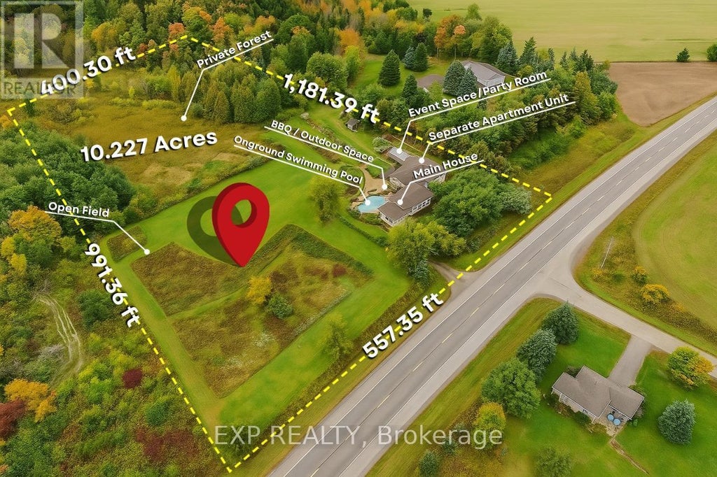 11433 HIGHWAY 9, PALGRAVE STUNNING 10-ACRE PRIVATE ESTATE WITH 5 BEDROOMS, 5 BATHROOMS, ABOVE-GROUND POOL, SUNROOM, FINISHED WALK-OUT BASEMENT, MASSIVE EVENT SPACE & MEDIA ROOM, MASSIVE SOCCER FIELD AND SEPARATE INCOME-GENERATING SUITE A RARE TURNKEY RETREAT DESIGNED FOR FAMILY, ENTERTAINMENT, AND MULTI-GENERATIONAL LIVING! WELCOME TO THIS ONE-OF-A-KIND PROPERTY WHERE LUXURY MEETS TRANQUILITY. TUCKED AWAY BEHIND TREES AND SET FAR BACK FROM THE ROAD, THIS ESTATE OFFERS THE ULTIMATE IN PRIVACY AND OPEN SPACE. ENJOY FAMILY CELEBRATIONS, SUMMER BBQS, NEW YEAR'S PARTIES, OR QUIET EVENINGS BY THE BONFIRE ALL ON YOUR LAND.INSIDE, THE OPEN-CONCEPT KITCHEN IS A CHEF'S DREAM FEATURING GRANITE COUNTERS, MASSIVE ISLAND, OVERSIZED S/S STOVE, FRIDGE, FREEZER, DISHWASHER, MINI FRIDGES, AND PLENTY OF STORAGE. WALK OUT TO A BEAUTIFUL WINTERIZED SUNROOM OVERLOOKING YOUR PRIVATE BACKYARD OASIS. HOST EVENTS IN THE HUGE REC ROOM OR HEAD TO THE MEDIA ROOM EQUIPPED WITH ITS OWN KITCHENETTE & BATHROOM PERFECT FOR GAME NIGHTS OR GUEST STAYS. THE HOME INCLUDES 5 SPACIOUS BEDROOMS AND 5 WELL-APPOINTED BATHROOMS, WITH HEATED FLOORS IN THE PRIMARY ENSUITE AND 3RD BATHROOM FOR ADDED COMFORT. THE FINISHED WALK-OUT BASEMENT OFFERS A FLEXIBLE LAYOUT THAT CAN EASILY ACCOMMODATE A SECOND FAMILY OR BE USED AS A SEPARATE RENTAL UNIT, CREATING POTENTIAL FOR ADDITIONAL INCOME.OUTDOORS, ENJOY A SPARKLING ABOVE-GROUND POOL, GAS BBQ HOOKUP ON THE DECK, A PRIVATE WALKING TRAIL THROUGH YOUR FOREST, AND AN OPEN FIELD FOR SPORTS, GARDENING, OR RELAXATION. A 3-CAR GARAGE AND PARKING FOR OVER 50 VEHICLES COMPLETES THIS INCREDIBLE PACKAGE.TURNKEY, PRIVATE, AND FILLED WITH POTENTIAL. THE EVENT SPACE & MEDIA ROOM WITH A KITCHENETTE AND WASHROOM MAKES A PERFECT GUEST SUITE OR PRIVATE ESCAPE. RECENT UPGRADES INCLUDE A ROOF 7 YEARS OLD, AIR CONDITIONING 9 YEARS AND A RENTED HOT WATER TANK 5 YEARS OLDS 11433 HIGHWAY 9 IS MORE THAN A HOME. It's A LIFESTYLE. BOOK YOUR SHOWING TODAY. (id:6289)
