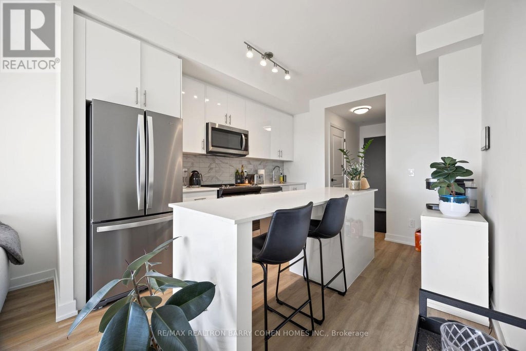 Chic & Stylish 1+1 Bedroom Condo in Minto Oakvillage 2 - Where Modern Living Meets Everyday Luxury. Welcome to the perfect suite for first time buyers or savvy investor in the heart of North Oakville's vibrant Minto Oakvillage. This bright and beautiful 1+1 bedroom, 691 square foot suite offers a fresh, modern vibe with a touch of upscale charm. Thoughtfully designed with upgraded premium finishes including wide-plank flooring, a designer backsplash, sleek cabinetry, and quartz countertops - every corner feels polished and inviting. The kitchen is as functional as it is fabulous, featuring a large island that is perfect for prepping, dining, or catching up with friends, complete with Whirlpool appliances to bring out your inner chef. Soaring floor-to-ceiling windows flood the space with natural light. Your balcony offers a serene escape with unobstructed views, just you, the sky, and golden sunsets. The oversized den makes the perfect home office, guest nook, or creative corner. In-suite laundry adds everyday ease. Residents enjoy top-tier amenities, including a modern party room with kitchenette, a rooftop terrace with BBQs, and a fully equipped fitness centre. One underground parking spot and a locker are also included. All of this in a prime location close to trendy shops, restaurants, highways 403/407/401, GO Transit, Sheridan College, and Oakville Trafalgar Memorial Hospital. (id:6289)