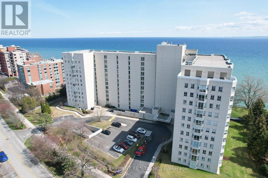 Welcome to Royal Vista: Luxurious Lakefront Living with Panoramic Views. Discover unparalleled comfort and style in this stunning "Lambeth" model corner unit at Royal Vista. This meticulously renovated 8th-floor residence offers 1,405 square feet of luxurious living space, boasting breathtaking Escarpment, City, and Lake views. Bathed in natural light, this bright and sunny unit features a desirable North, West, and Southwest exposure. Recently renovated throughout, the home showcases new flooring, an updated kitchen with upgraded countertops and elegant white cabinetry, and tastefully finished bathrooms with quality fixtures and finishes. The expansive layout provides ample living space, featuring two spacious bedrooms and two full bathrooms. The large living room, complete with a dedicated sitting area, offers captivating lake views, creating a serene and inviting atmosphere. The separate formal dining room is perfect for hosting gatherings and entertaining guests. The primary bedroom is a true retreat, featuring his & her closets and a luxurious 4-piece ensuite bathroom. A convenient laundry room with stacked, front-load washer and dryer, along with additional storage, enhances the practicality of this exceptional unit. Royal Vista offers an array of premium amenities, beginning with a hotel-inspired lobby featuring modern finishes. The building also includes a party room with a full kitchen, ideal for large gatherings, an exercise room, and a dry sauna. During the summer months, residents can enjoy the outdoor pool and the outdoor tennis court, which has been recently updated with pickleball lines. This unit includes 1 underground parking space, and outdoor surface parking is available for visitors. Located just steps from various amenities and parks, Royal Vista provides a convenient and vibrant lifestyle. With easy access to highways, public transit, and the Appleby GO station, commuting and exploring the surrounding area is effortless. (id:6289)