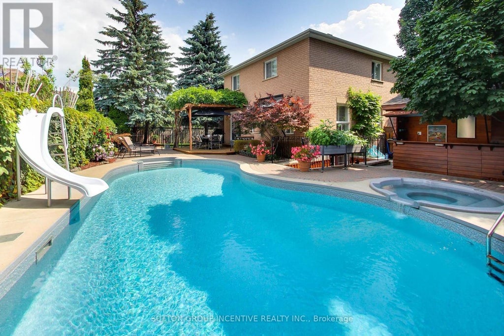 This gorgeous 4 bedroom 4 bathroom beauty is located on a quite court with a premium pie shaped lot complete with a dream backyard oasis. Add to that a separate walkup entrance to a potential 1 bedroom apartment or inlaw and this stunning home has it all. The open concept main level boasts great spaces with Kitchen Aid stainless steel appliances, granite counter tops and tumbled marble backsplash in the kitchen. Enjoy additional main floor conveniences like laundry, direct access to the garage with new epoxy floors, 2 piece bathroom and multiple accesses to the dream backyard. Relax by the pool (new liner 2022) with attached spa, pool bar area with exterior 2 piece bathroom and enclosed pool equipment area. Take in the mature landscaping throughout the property with wonderful decking and seating areas. Additional nice touches like the inground sprinkler system, attached exterior storage area, direct barbecue gas line and even exterior hot water lines. On the upper level you will find 4 good size bedrooms all with maple hardwood flooring. The oversized primary bedroom has an amazing spa like en-suite with a huge separate vanity area and walk in closet. This completely redone ensuite boasts a huge separate glass door shower, free standing tub and a quartz counter top vanity. A further large 4 piece bathroom is available for the family. If you need extra space the fully finished lower level with newly redone bathroom, bedroom, sitting area with gas fireplace and kitchen area is ready for you. On this level you will benefit from the professionally done separate walk up entrance. There is also a closet with water hookup if you wanted to add laundry to this level and a huge cold cellar area. New roof in 2024, Toto toilets in main and upper level and other high end fixtures and materials throughout. This home has so many thoughtful touches that it really must be seen to appreciate. This home exudes pride of ownership. (id:6289)