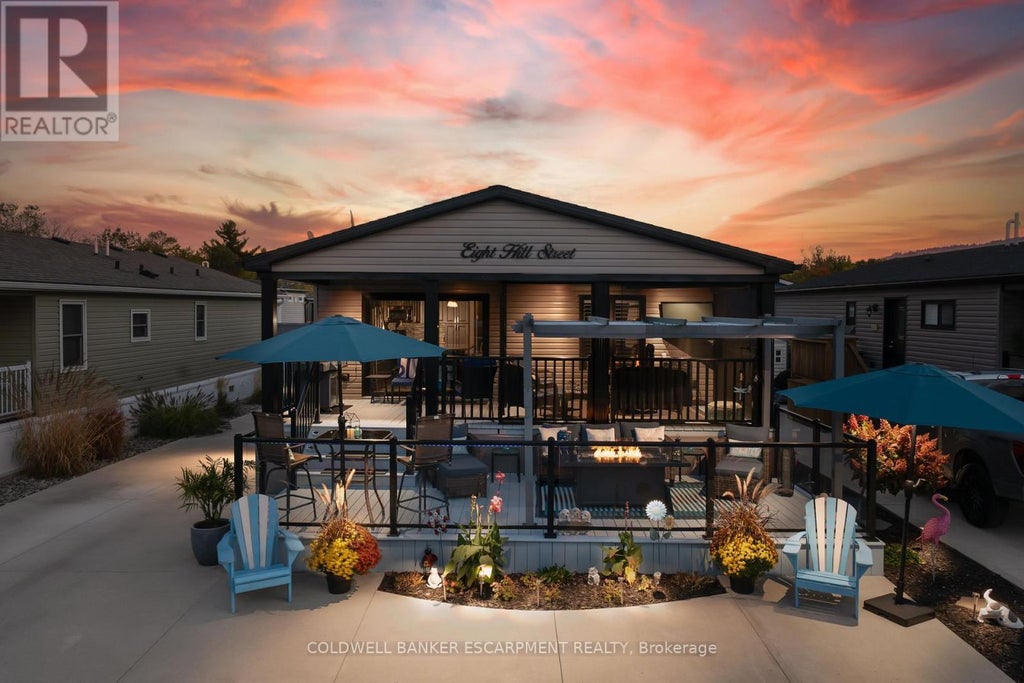 Looking for a way to smartsize your life and enjoy retirement, yet be close to all sorts of amenities? This beautifully finished house offers a great floor plan and tons of outdoor living space too. Theres 2 bedrooms and 2 baths. This home has a great view of the in ground pool and the forest in the distance. Be prepared for jaw dropping sunsets and beautiful fall colours from your cozy screened in porch or deck. This gated community offers lots of activities and events for the residents year around. The park is beautifully maintained and so very close to shops, banks, restaurants and grocery stores. Live in rural Burlington and still be close to Town. (id:6289)