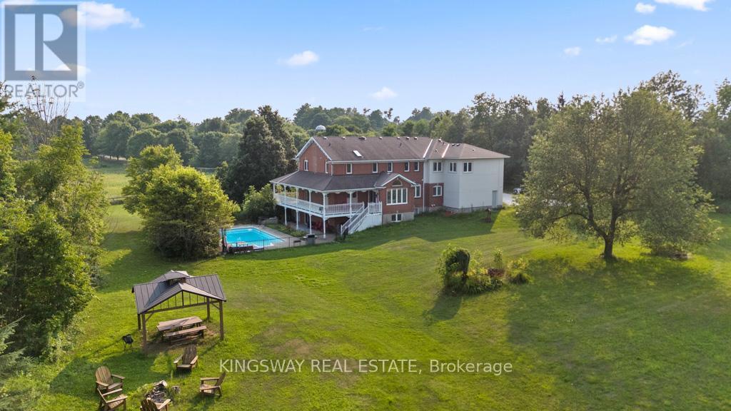Welcome to 14141 Dublin Line, Where Luxury Meets Lifestyle of 6119 sq ft of total living space on Over 9 Acres of Pure Country Perfection. If you're searching for tranquility, privacy, natural beauty, and luxury wrapped into one incredible estate this is the one! Set on over 9.4 pristine acres of manicured countryside, this show stopping estate offers glorious panoramic views, rolling hills, and a sense of peace thats nearly impossible to find all just 5 minutes to the GO Train, 15 to the 401/407, and a short drive into town. It's your private retreat, perfectly connected. Fully gutted in 2023 and renovated top to bottom by 2024 with no expense spared. This home is a masterclass in design and comfort. From rich hardwood floors to porcelain tile, granite countertops, and luxury finishes throughout everything feels intentional, elevated, and built to impress. From the moment you enter, youre greeted with jaw-dropping views of the rolling landscape and an open layout thats made for hosting. The main level features a crisp white chefs kitchen, oversized living, dining, and family rooms, and a floor plan that balances elegance with everyday functionality. Upstairs? Youll find 5 spacious bedrooms, including TWO primary suites one with three walk-in closets and a spa-like 5-piece ensuite, the other overlooking the pool and hot tub with its own luxe bath. Four out of the five bedrooms have their own ensuites perfect for large families or guests. The walkout basement is bright, open, and built for entertaining. Think: movie nights, game days, slumber parties this space does it all and more. Outside, the amenities continue:Set back from a tree-lined road for maximum privacy, Fully fenced yard with plenty of space to roam, 18x36 in-ground pool + hot tub, Horse paddock, Detached shed, And views that belong on a postcard. This isn't just a home its a lifestyle upgrade!!. Whether you're raising a family, hosting unforgettable events, or just craving space and serenity. (id:6289)
