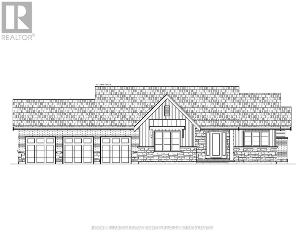 The 'Grousewood' model, all brick bungalow with I.C.F foundation, built by Matias Homes with 1,800 sq.ft. of living space and sitting on a 1.5-acre lot features 3 bedrooms, 2 baths, spectacular hardwood floors throughout and ceramic in wet areas. The open concept main floor with 9 ft ceilings, dining area, cozy great room with fireplace, oversized kitchen with island and generous use of windows throughout, allow for plenty of natural light. Finishing off the main floor is a laundry room, 4-pc upgraded main bath, enormous primary with his & hers walk-in closets, 3-pc ensuite and 2 generous sized bedrooms. The lower level is partially finished with a rough-in for a 3-pc bath for future development. The oversized triple car garage makes a great use for extra storage space. Don't miss out on this great opportunity to own a custom-built home just a short drive from Kingston. (id:6289)