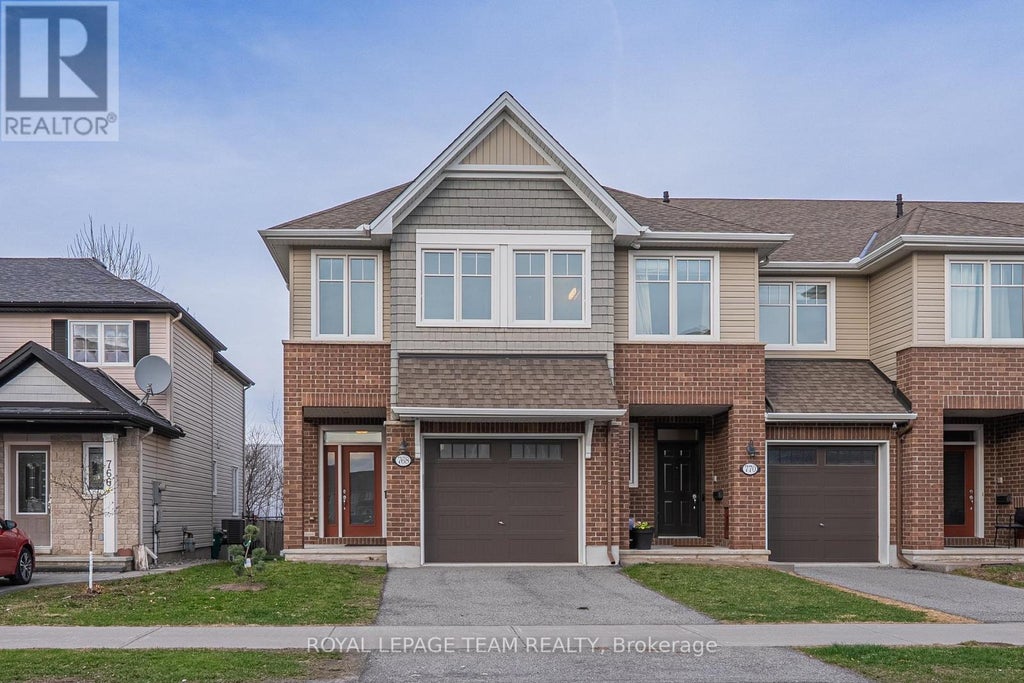 Welcome to this exceptional Tamarack Cambridge end-unit townhome in the sought-after Findlay Creek, one of Ottawas fastest-growing communities. Featuring a PRIVATE driveway and NO rear neighbors, this ENERGY STAR certified home is designed for modern living with a bright, functional layout and premium finishes. It offers 3 spacious bedrooms, 3 bathrooms, and a fully finished basement, making it ideal for families or investors. The exterior showcases a stylish brick and siding façade with an oversized garage. Inside, the main level features rich hardwood flooring and an open-concept design connecting the living, dining, and kitchen areas. The gourmet kitchen boasts a granite island, new stainless steel appliances, under-cabinet lighting, and a walk-in pantryperfect for daily meals or entertaining. The living room includes a Napoleon linear gas fireplace with changeable lighting and matching wall sconces, creating a cozy and sophisticated ambiance. The staircase landingunique to end unitsfeatures four large windows and a built-in niche for decor. Upstairs, the primary bedroom offers a luxury 4-piece ensuite and a spacious walk-in closet, while two additional bedrooms and a second-floor laundry room with a utility sink enhance convenience. The fully finished basement provides versatile space for a home theatre, gym, or playroom. Recent updates include new carpeting, vanity lighting, and faucets. Additional features include an HRV ventilation system and a tankless hot water heater. The private, fully fenced backyard offers a serene retreat with a childrens playhouse and garden beds. Located near parks, schools, shopping, public transit, and the future Leitrim LRT station, this move-in-ready home combines style, comfort, and convenience. Backing onto the plaza, everything you need steps away. Don't miss your chance to own this beautifully maintained property! (id:6289)