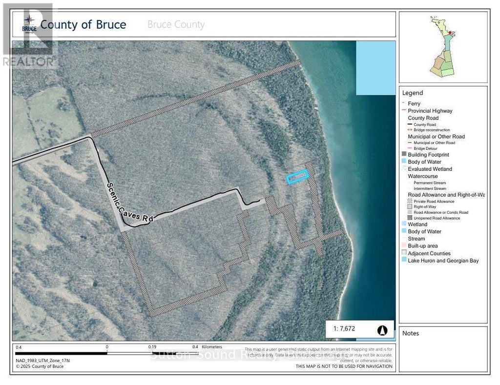 Discover your private slice of nature with this spacious 93ft x 280ft vacant lot, perfectly situated near the breathtaking Greg's Caves and Bruce Trail. Nestled in a quiet and scenic area, this DC-zoned property offers an exceptional opportunity for recreational use only - ideal for nature lovers or outdoor adventurers looking for a peaceful escape. Enjoy proximity to Georgian Bay, with a nearby trail leading down to the shoreline for serene hikes, picnics, or wildlife spotting. Access to the property is via a municipal road allowance - partially opened and partially unopened - offering a secluded feel with a sense of adventure. This unique parcel is perfect for those seeking a rustic retreat in the heart of Ontario's natural beauty. **NOTE**: This is an UNBUILDABLE recreational lot with no services. Buyers must conduct their own due diligence regarding zoning and permitted uses. Northern Bruce Peninsula does not permit camping on vacant land as per their BY-LAW NO. 2018-66. Taxes $41.76. Feel free to contact the municipality at 519-793-3522 ext 226. Please reference Roll Number: 410962000912761. (id:6289)