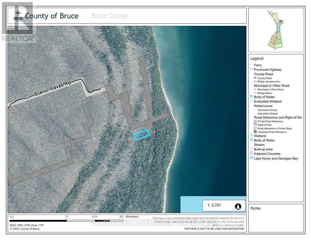 Discover your private slice of nature with this spacious 94ft x 240ft vacant lot, perfectly situated near the breathtaking Greg's Caves and Bruce Trail. Nestled in a quiet and scenic area, this DC-zoned property offers an exceptional opportunity for recreational use only - ideal for nature lovers or outdoor adventurers looking for a peaceful escape. Enjoy proximity to Georgian Bay, with a nearby trail leading down to the shoreline for serene hikes, picnics, or wildlife spotting. Access to the property is via a municipal road allowance - partially opened and partially unopened - offering a secluded feel with a sense of adventure. This unique parcel is perfect for those seeking a rustic retreat in the heart of Ontario's natural beauty. **NOTE**: This is an UNBUILDABLE recreational lot with no services. Buyers must conduct their own due diligence regarding zoning and permitted uses. Northern Bruce Peninsula does not permit camping on vacant land as per their BY-LAW NO. 2018-66. Taxes $41.76. Feel free to contact the municipality at 519-793-3522 ext 226. Please reference Roll Number: 410962000912781. (id:6289)