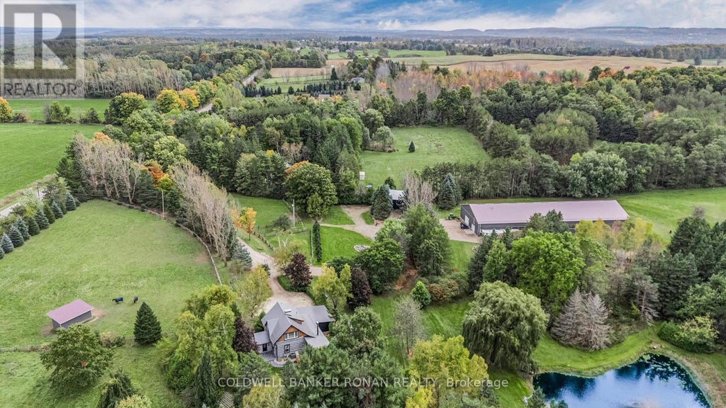 Discover a blend of heritage and refined country living on this remarkable 44.89-acre estate, where timeless craftsmanship meets peaceful seclusion. Set at the end of a long, private driveway, this extraordinary property offers unmatched privacy, scenic beauty, and a lifestyle of elegance and purpose. At its heart is a stunning Ottawa Valley Log Home, handcrafted initially in the mid-1800s and thoughtfully relocated to its current site in 1976. The home has been beautifully updated while preserving its historic charm, creating a warm, inviting atmosphere that blends rustic character with modern comfort. Ideally suited for equestrian lovers, hobby farmers, or those dreaming of a wellness retreat, the property features three spacious paddocks and a 70' x 150' indoor riding arena with an adjacent heated workshop and three 12' x 12' soft-stall horse stalls providing everything needed for year-round training, events, or personalized care. A classic bank barn and large driveshed both add additional storage and flexibility. The grounds are equally captivating, with rolling trails, mature trees, and open meadows that invite exploration and serenity. A private trout pond adds to the picturesque setting, ideal for moments of reflection or scenic enjoyment from the home's vantage point. Whether your vision includes a tranquil retreat, sustainable farm life, or a luxurious escape from city living, this property delivers the perfect canvas. It's not just a home, it's a rare opportunity to own a piece of Canadian history in a setting that embodies privacy, beauty, and rural sophistication. (id:6289)