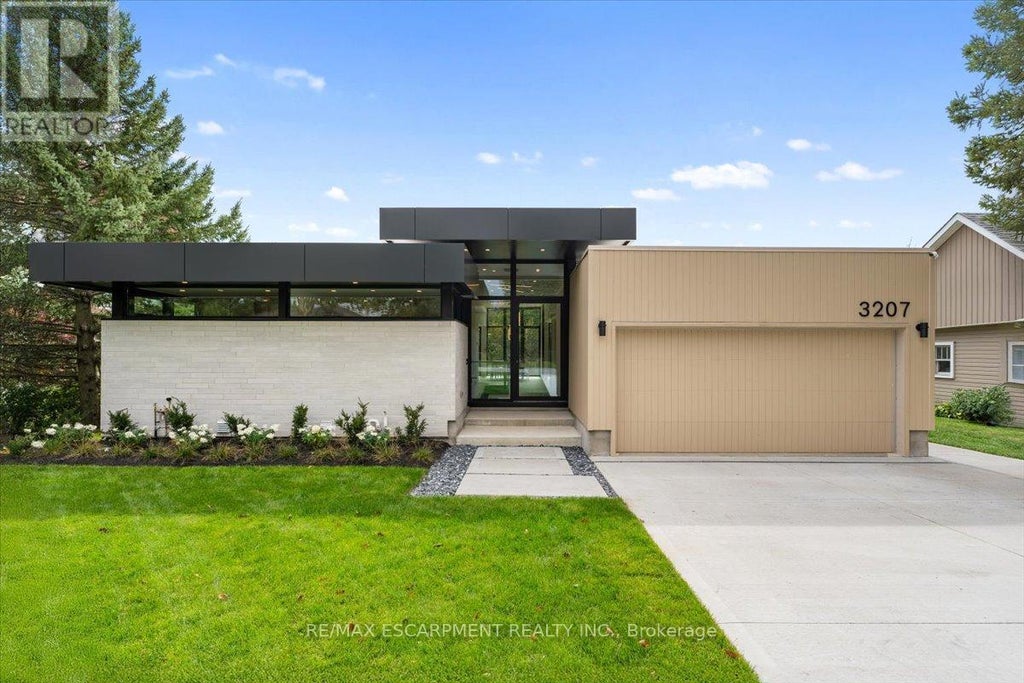 Welcome to 3207 Vivian Line -- an architectural masterpiece crafted by SMPL Design Studio, where modern design meets timeless sophistication. This one-of-a-kind residence features expansive floor-to-ceiling windows across the rear facade, flooding the home with natural light and offering a seamless connection to the outdoors. The heart of the home is the custom-designed kitchen with striking black and walnut cabinetry, a show-stopping 15-foot Vanilla Noir Caesarstone island, and a walk-in pantry for added function and style. The open-concept living and dining space is anchored by a sleek gas fireplace and light-toned engineered hardwood floors that flow throughout the main level. The home offers three main floor bedrooms, each with custom-built wardrobes. The primary suite includes a private 3-piece ensuite, while a separate 4-piece bath serves guests and family. The fully finished lower level adds a cozy rec room with a second gas fireplace, a fourth bedroom, an additional 3-piece bathroom, and ample storage. Outside, a modern concrete driveway leads to a spacious two-car garage. A perfect blend of form, function, and flair this home is a rare offering in a sought-after Stratford location. (id:6289)