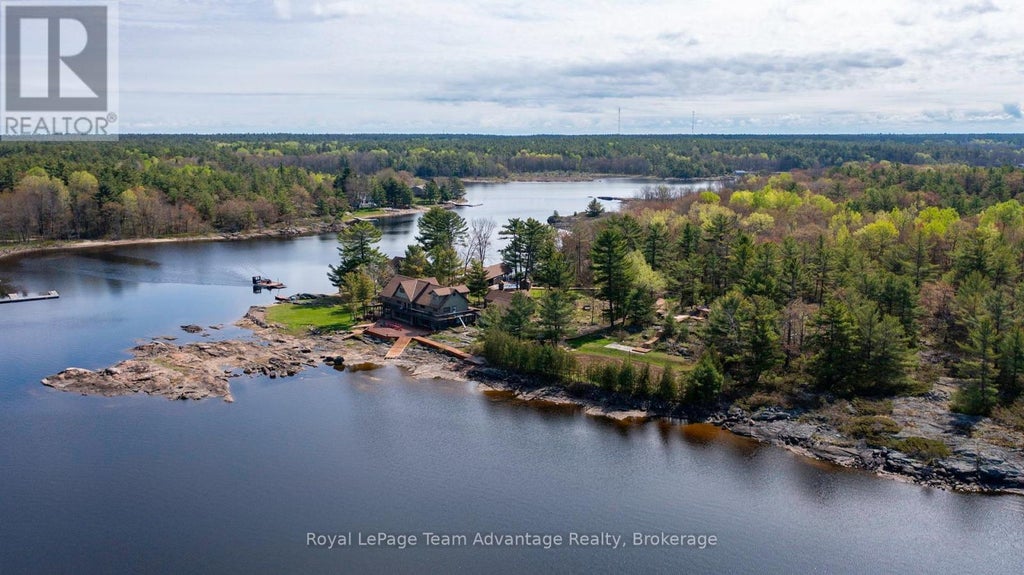 Private Island Retreat Pointe au Baril, Georgian Bay. A rare opportunity to own a nearly 5-acre private Island property with year-round access in the heart of Georgian Bay. Surrounded by crown land, this property ensures unmatched privacy and tranquility. Enjoy spectacular sunrises and sunsets daily, along with one of the largest private docking systems in the Archipelago ideal for multiple watercraft. Features include seating areas, a two-level dive tower, and an adjacent recreation zone. The screened outdoor kitchen and living area is equipped with BBQs, grills, and a pizza oven. A separate enclosed service kitchen includes a farmhouse sink, refrigerator, dishwasher, and storage. Relax in the private inground hot tub, perfect for entertaining. Accommodations: Guest house: 4 bedrooms, each with private bath, plus powder room and laundry. Main house: 6 bedrooms, 3 bathrooms, indoor sauna, and a primary suite with walk-in closet, spacious ensuite, and private office. The chef's kitchen includes double ovens, sinks, and dishwashers, with an 18' dining table seating 20. A 70' wall of windows offers panoramic water views. Laundry on both levels for convenience. Outdoor Features: Wooden walkways, sand beach, large rock point, and observation deck with sweeping bay views. Enjoy a beach volleyball court with seating, extensive decking, and multiple storage buildings. An exceptional blend of indoor and outdoor living. Rebuilding this turnkey compound today would exceed $3.4M. Ideal as a family retreat or high-end rental investment. Your Georgian Bay dream awaits. (id:6289)