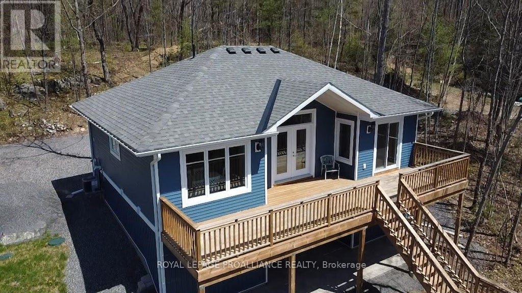 Introducing the Blue Jay Cottage beautifully crafted, turnkey waterfront retreat nestled along the northern tributary of Mazinaw Lake. Surrounded by stunning Canadian Shield outcrops, this custom-built bungalow, completed in 2024, offers panoramic views and a seamless blend of nature and comfort. Designed for year-round enjoyment, the home features high-quality construction including an ICF foundation, and an open-concept layout that enhances light and space. Move-in ready with no need for renovations, it's built for carefree living and adventure. Upgraded kitchen appliances and well thought out cabinetry will appeal to those who appreciate a well organised kitchen space. Families and friends will appreciate gathering in this common space that is extended even further with the spacious deck off the family. The lower walkout has high ceilings and provides a spacious area with additional bedrooms, and enough room for perhaps a home office, games or media room. The operation of the home is centered in the mechanical room with brand fixtures that include an HRV system and central air. For added convenience, the seller may offer flexible mortgage options, making ownership even easier. Set in a quiet tributary with minimal boat traffic, the location is ideal for swimming and paddling, with quick boat access to the expansive waters of Mazinaw Lake and the iconic cliffs of Bon Echo Rock. Whether you're seeking adventure or relaxation, end each day under a sky full of stars.Welcome to Blue Jay Cottage in the heart of the Land O Lakes where lifelong memories with family and friends begin. (id:6289)