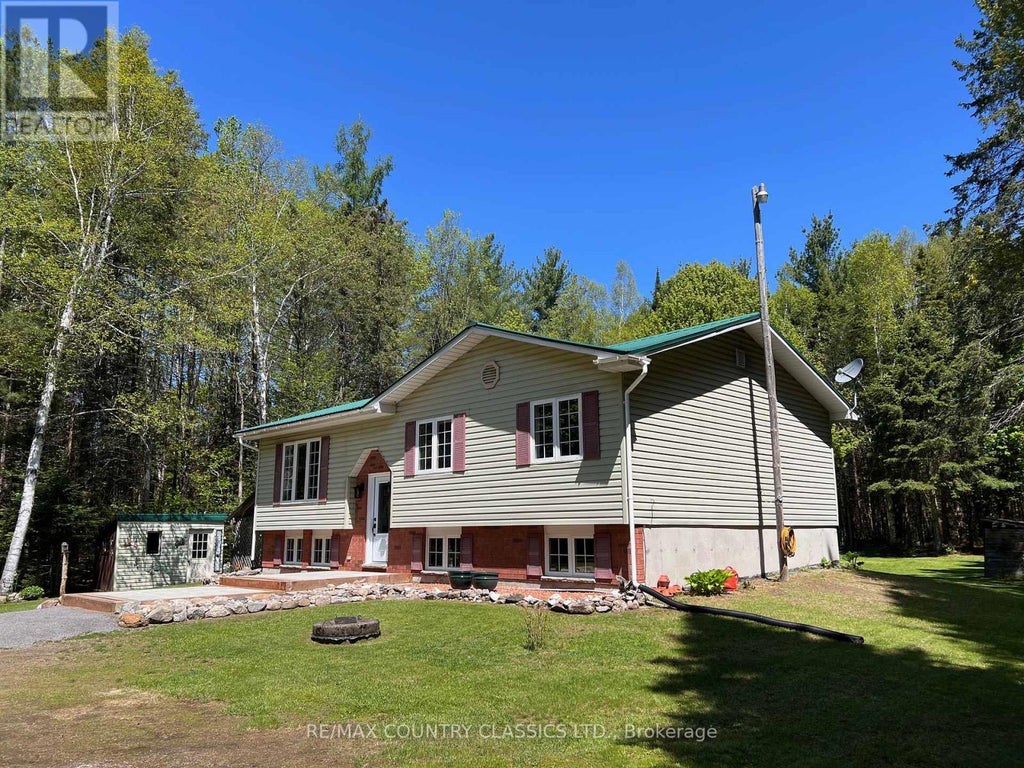 Killaloe - Welcome to this totally private raised bungalow on 4.62 acres surrounded by trees. Immaculately maintained home is a pleasure to view and it has had many recent upgrades. New chimney in 2022, new hot water tank in 2020, new pressure tank, UV system and water pump in 2021, new wood stove in 2021, and new carpets in the bedrooms. Main floor features, living room, dining room, kitchen, 3 bedrooms and a 4 pc bathroom. Kitchen has space and a hook up for a dishwasher. Bright lower level has a very spacious rec room with a wood stove, laundry room combined with a 2 piece bathroom, and a large utility room to give you lots of storage. Cozy wood stove in rec room heats the whole house and is WETT certified. Patio doors in the dining room give access to the back deck where you can sit and enjoy the wildlife in the backyard. New windowinstalled in the living room and glass willbe replaced byJuly 15th in the 2 bedrooms facing the driveway. New steef roof in 2010, Septic pumped in 2021, 200 amp service, Hydro approx $160 per month, Portion of the driveway is shared by the neighbour who has the right to use the driveway to access his property. It is very seldom used. Property lines are marked and there are some walking paths through the property. (id:6289)