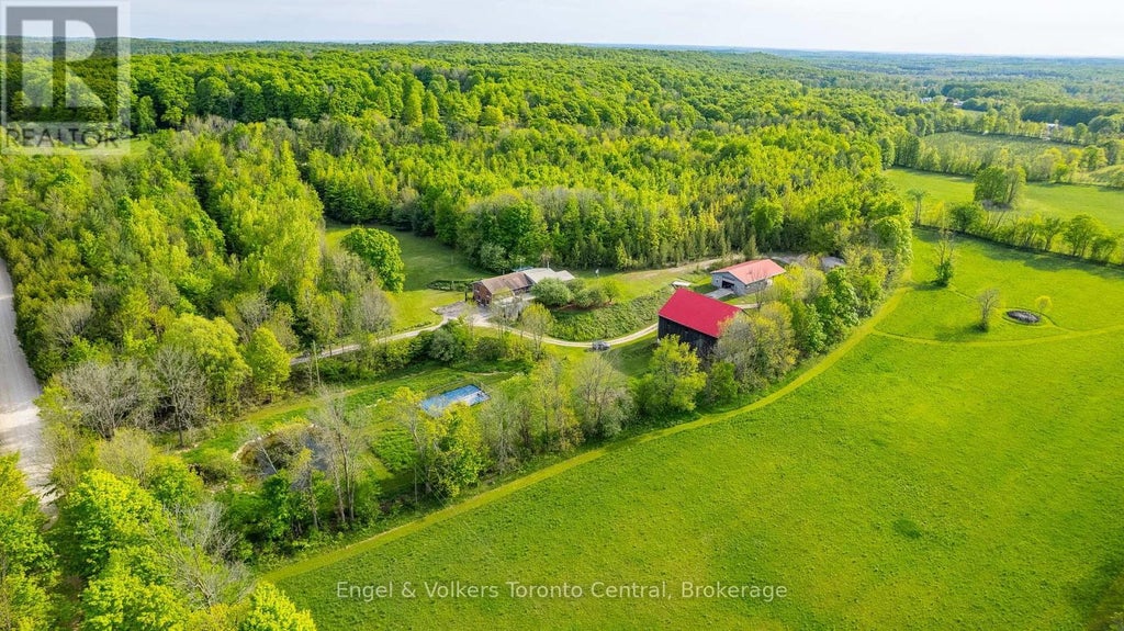 Your Dream Estate Awaits! Escape to 50 acres of breathtaking countryside, where panoramic views meet unforgettable sunsets every single day. This property offers a harmonious blend of refined living, unparalleled amenities, and the serene beauty of nature, all conveniently located near the GTA, Guelph, Kitchener, Cambridge, Collingwood, Lake Huron, and Georgian Bay. Step inside the 4 bedroom, 2 bath bungalow to discover a world of modern elegance. The updated chefs kitchen is a culinary masterpiece, boasting new quartz countertops, dedicated coffee station, stylish open display shelving, fresh tile backsplash and sophisticated pendant lighting which illuminates the breakfast bar. An elegant great room with a wood burning fireplace is an amazing space which leads to an enclosed hot tub to relax. Every detail has been considered for your comfort and aesthetic pleasure. Beyond the main residence, discover a wealth of features designed for both leisure and productivity. The impressive 50x60 showpiece barn stands ready to host unforgettable gatherings, adding a magnificent focal point to the property. For the entrepreneur or dedicated hobbyist, the 30x60 versatile workshop is fully equipped with hot and cold water, a wood stove, a hydraulic lift, and much more. Embrace the farm-to-table lifestyle with a thriving raised vegetable garden, and lose yourself in the tranquility of scenic walking trails winding through the properties enchanting "forest cathedral" and pond. Guests will revel in the comforts of home within the luxuriously updated Airstream. Indulge in al fresco dining under the stars in the serene apple orchard, or perfect your swing on your very own private 3-hole golf course. This is truly an extraordinary retreat where every moment is an experience. Stay connected with ease thanks to high-speed fibre optic internet and reliable cell service. This is more than a home; it's a lifestyle. Don't miss the opportunity to own this unparalleled countryside sanctuary (id:6289)