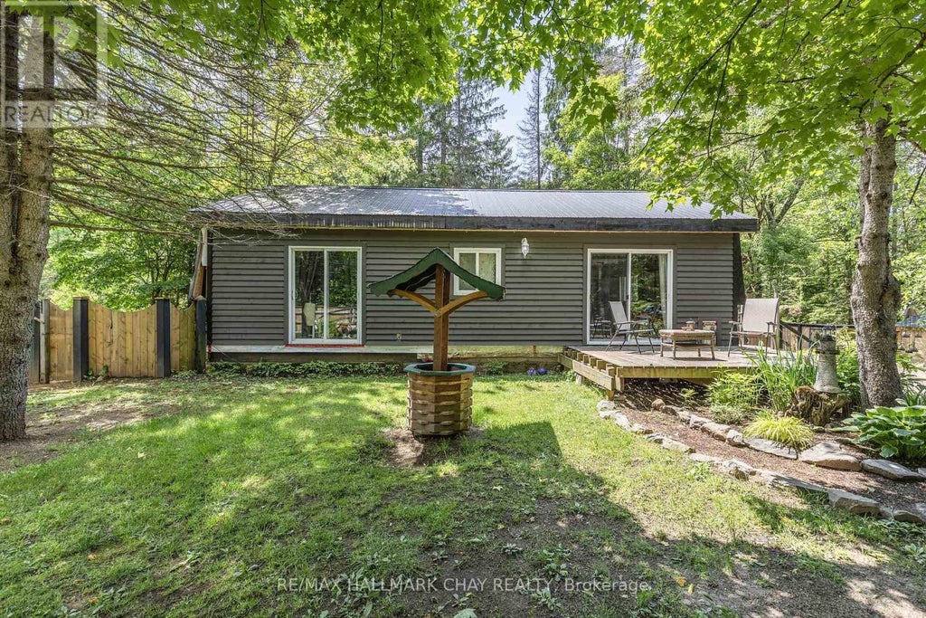 A quaint bungalow nestled on just over 2 forested acres awaits! This little gem has beautiful gardens, a fenced yard within the mature treed lot, wrap around deck and garden / storage sheds along with a detached garage, which features a workshop area too. The kitchen has been nicely refreshed and features a cozy dining area, all overlooking the forest. Primary bedroom has a walkout door to a future front patio - perfect for morning coffee! An unfinished basement with walkout offers opportunity for improvement and additional living space. This is a great starter home, ideal for those downsizing or for the nature enthusiast looking for a weekend retreat in Muskoka. The homeowner has created beautiful trails through the forest with a charming bridge across a tranquil little creek and thoroughly enjoys walking and dirt biking here. Come have a look at this home, see the lovingly maintained gardens and enjoy a stroll through the woods while you're considering this one! (id:6289)