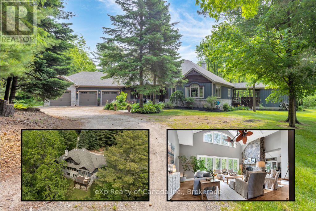 Welcome to this stunning custom-built home, nestled on over 16 acres of serene, wooded ravine with a creek that offers the perfect blend of luxury, comfort, and privacy. Pride of ownership is evident throughout this meticulously maintained property. Step inside to a spacious front entry that leads into a grand living room featuring soaring vaulted ceilings and a striking double-sided stone gas fireplace. The custom eat-in kitchen is a chef's dream, boasting rich mill work, granite countertops, heated floors, stainless steel appliances including a double wall oven, an island, and a walk-in pantry. Thoughtfully designed for everyday convenience, the kitchen also includes a garburator, instant hot water, and a separate tap for reverse osmosis drinking water. From the kitchen, walk out to a raised deck or relax in the 4-season sunroom, complete with a cozy wood-burning fireplace and a natural gas heater for year-round enjoyment. The main floor also offers a formal dining room, powder room, and a luxurious primary suite with vaulted ceilings, a walk-in closet with laundry chute, spa-like 5-piece ensuite with heated floors, and private access to the raised deck. The finished lower level features in-floor radiant heating, a spacious rec room warmed by a wood-burning stove, a dedicated office space, three additional bedrooms, a 4-piece bathroom, and a walkout to the patio ideal for guests or multi-generational living. Convenient access to the lower level is also available through the attached triple-car garage. Additional features include a whole-home generator, a garden shed, and plenty of space to explore and enjoy the natural surroundings. A rare opportunity to own a private, peaceful retreat where thoughtful design meets modern comfort - this is country living at its finest. (id:6289)