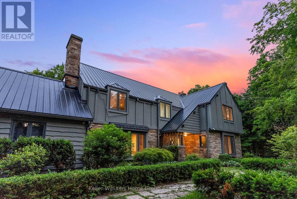 Welcome to your own private oasis, nestled on nearly 14 rolling acres between Guelph and Cambridge, with quick and easy access to the 401. Situated on one of the highest hills of its domain, this custom-built, over 3,400 sq. ft. home offers breathtaking views of the countryside including a tranquil stream, ideal for peaceful moments on your expansive multi-level deck. Designed to harmonize with its natural surroundings, this four-bedroom, five-bathroom residence blends comfort, functionality, and luxury. The outdoor living space is an entertainers dream, featuring a built-in BBQ station and an exercise swim spa, perfect for summer gatherings or relaxing after a long day. Inside, the gourmet kitchen is a chefs delight, complete with dual refrigerators and generous counter space. The dedicated dining and living areas are warm and inviting, anchored by a cozy gas fireplace. A spacious main-floor office provides the perfect setup for remote work, while the adjacent entertainment center/library and rear sunroom is ideal for summer evening movie nights. The fully finished lower level offers walk-out access to your private demesne and includes a large recreation space with a second gas fireplace, a tucked-away sauna, and ample room for guests or multigenerational living. Beyond the home, the property features a 10x10 storage shed and a double-door drive shed, ideal for large equipment or easily convertible into a woodworking studio, car enthusiast's garage, or ultimate workshop. Nestled near the stream, an electrified octagonal gazebo offers a whimsical escape for kids or a creative hideaway for adults. Whether you're dreaming of a quiet countryside life, entertaining on a grand scale, or pursuing outdoor hobbies, this property delivers it all. Don't miss your chance to make this exceptional estate your forever home, book your private showing today! (id:6289)