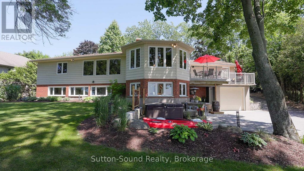 Welcome to 359288 Grey Rd 15, a beautifully updated Georgian Bay waterfront retreat just minutes from Owen Sound. This impeccably maintained 4-bedroom, 3 bathroom bungalow with attached garage offers over 400 ft of pristine shoreline, and is nestled on a sprawling, beautifully landscaped 0.65 acre lot with panoramic views and unforgettable sunsets. Designed with both comfort and sophistication in mind, the main level features a spacious, open concept eat-in kitchen complete with a granite island- ideal for entertaining- flowing seamlessly into a stunning dining room addition with expansive windows that frame the captivating waterfront. The main floor also hosts a powder room, living room with gas fireplace, two generously sized bedrooms and a spa-inspired bathroom showcasing exquisite tilework and glass walk-in shower. Energy-efficient ground source heating ensures year-round comfort. The fully finished lower level, with its own private entrance, offers exceptional versatility- perfect for extended family or guests- featuring a second dine-in kitchen with quartz countertops, a welcoming living room with electric fireplace, two additional bedrooms, and a beautifully appointed 4-pc bath with soaking tub and tiled shower. Step outside and the multiple entertaining areas, a spacious dock, and thoughtfully designed spaces invite you to relax and enjoy the very best of refined waterfront living. (id:6289)